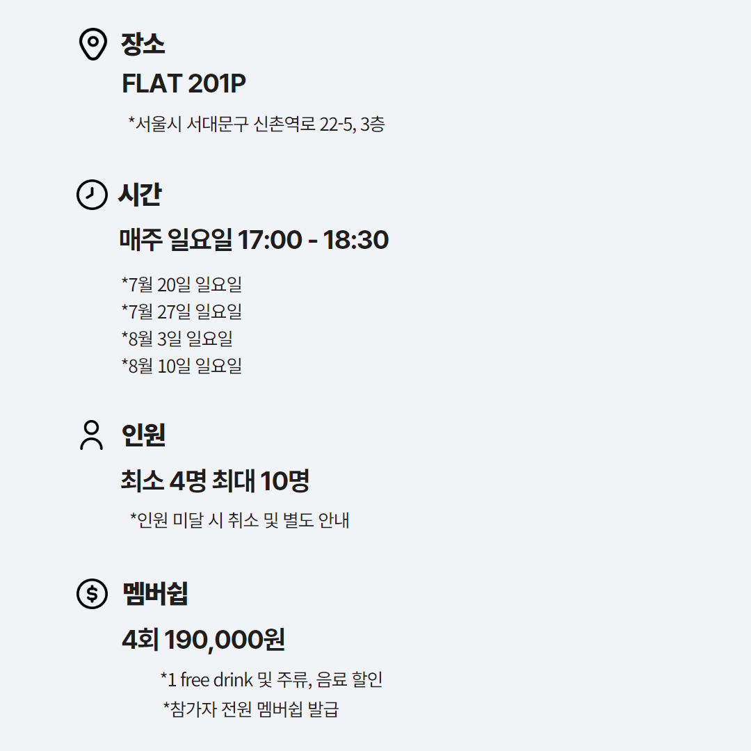 4회차 I 8월 10일 일요일 I 17:00 - 18:30